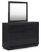 | Details | B768B5: Includes headboard, footboard and rails, Made with pine solids, veneers and engineered wood substrate, Textured black wood stain with waxy topcoat, Extra wide rails for a bench-like wrap around, Foundation/box spring required, sold separately, Mattress available, sold separately, Assembly required, B768B1: Includes dresser and mirror, Made with pine solids, veneers and engineered wood substrate, Textured black wood stain with waxy topcoat, Hardware-less design, 6 drawers with fully finished interiors, dovetail construction and ball-bearing side glides (top drawers felt lined), Mirror attaches to back of dresser, B768-46: Made with pine solids, veneers and engineered wood substrate, Textured black wood stain with waxy topcoat, Hardware-less design, 5 drawers with fully finished interiors, dovetail construction and ball-bearing side glides (top drawers with felt-lined bottoms), B768-92: Made with pine solids, veneers and engineered wood substrate, Textured black wood stain with waxy topcoat, Hardware-less design, 2 drawers with fully finished interiors, dovetail construction and ball-bearing side glides, 110V power supply with dual USB charging ports, Power cord included; UL Listed, | |