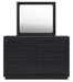 | Details | B768B4: Includes headboard, footboard and rails, Made with pine solids, veneers and engineered wood substrate, Textured black wood stain with waxy topcoat, Extra wide rails for a bench-like wrap around, Foundation/box spring required, sold separately, Mattress available, sold separately, Assembly required, B768B1: Includes dresser and mirror, Made with pine solids, veneers and engineered wood substrate, Textured black wood stain with waxy topcoat, Hardware-less design, 6 drawers with fully finished interiors, dovetail construction and ball-bearing side glides (top drawers felt lined), Mirror attaches to back of dresser, | |