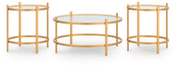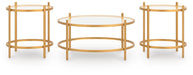 | Details | Includes coffee table and 2 end tables, Made with tubular steel frame, Durable metallic goldtone powder coat finish, Inset tempered glass top | |