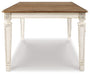 Bon appétit. This dining room extension table has all the right ingredients for a French country-inspired feast for the eyes. Antiqued two-tone aesthetic pairs a chipped white with a distressed wood finished top for a double serving of charm. Drop-in leaf allows you to comfortably accommodate eight.