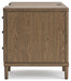 Details Made with hardwood solids, oak veneer and MDF substrate, Brown oak finish, Wood and metal drawer pulls, 5 standard drawers; 1 file drawer, Drawers with dovetail construction, fully finished interiors and ball-bearing side glides, 110V power supply with USB-A and USB-C charging ports, Power cord included; UL Listed, Open raceway for power cord management, Assembly required