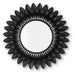 The striking flower power of this accent mirror creates a captivating focal point in your home. Crafted from sleek black metal, the layered petal frame adds depth and dimension. The bold design and easy elegance make it a perfect reflection of your individual style.