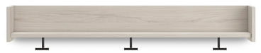 Details Made with engineered wood (MDF/particleboard/plywood) and decorative laminate for the right balance of affordability and durability, Light natural finish over replicated oak grain with authentic touch, 3 dark pewter-tone hooks, Open shelf, Included wall mounting bracket eases installation