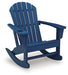 Add cottage-quaint charm to your outdoor oasis with this rocking chair in blue. Made of MEGA-TUFF® high-density polyethylene material, it’s sure to weather the seasons beautifully. Designed to shed rainwater, the chair’s slatted styling and classic Adirondack design provide exceptional form and function.