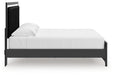 | Details | Includes upholstered panel headboard, panel footboard, platform rails and roll slats , Made with engineered wood (MDF/particleboard/plywood) and decorative laminate for the right balance of affordability and durability , Matte black finish with subtle replicated wood grain , Decorative laminate replicates natural or man-made material surfaces with consistent color, pattern and texture , Polyester upholstery , Chrome-tone and glitter accents, Bed does not require additional foundation/box spring; accommodates most zero clearance adjustable bases , Mattress available, sold separately, Minor assembly required | |